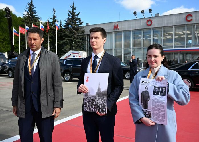 The head of state was handed over copies of the historical issues of the newspapers «Kyzyl Kyrgyzstan» and «Pravda», published on May 9, 1945 — exactly 80 years ago. The first official reports of the Victory in the Great Patriotic War were published on their pages.