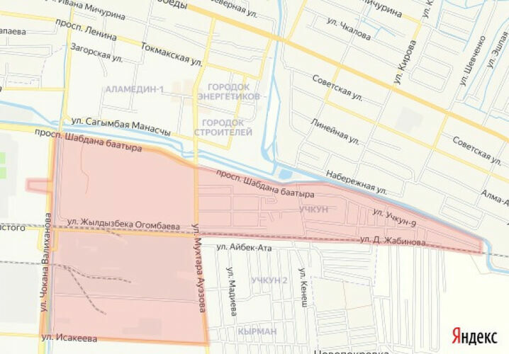 The water outage area in residential districts: Uchkun housing estate, Uchkun microdistrict.