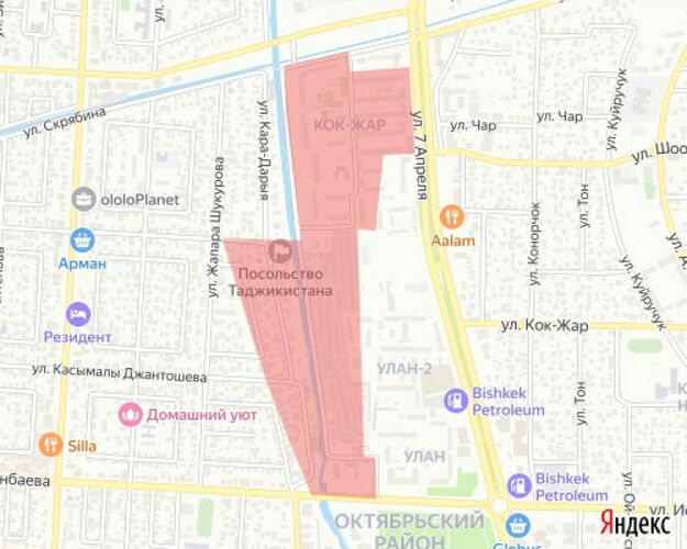 - 7 April — Mederov — Mavlyanov streets — to residential building 24/2 — Kara-Daryinskaya street.