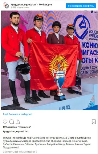 The show jumping team of Kyrgyzstan took third place at the Maxima Masters Eurasia Team Cup. The Equestrian Federation reported on Instagram.
