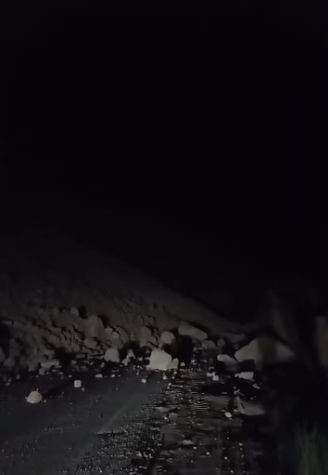 A rockfall occurred at the 242nd kilometer of the alternative North—South highway near Dzhumgal area, completely blocking traffic. Eyewitness reported.