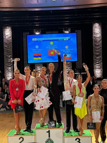 The couple from Kyrgyzstan, Vladimir Vyrleev and Maria Proshletsova, took first place, winning the gold medal and the world champion title in the Latin program among 65 competing couples.