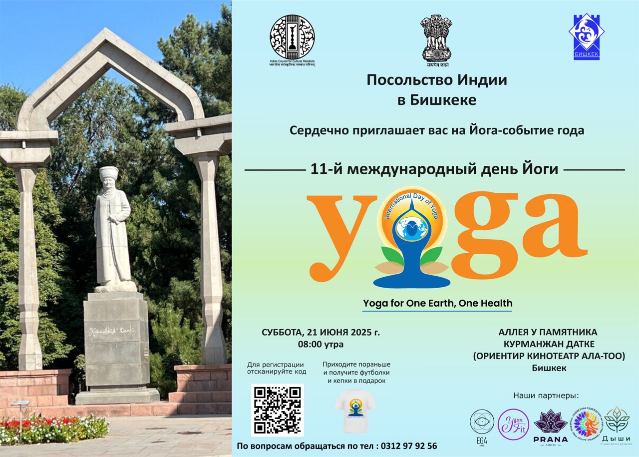 In celebration of the 11th International Day of Yoga, a yoga session will take place in Bishkek at 8 a.m. in front of Kurmanjan Datka monument. The Indian Embassy announced.