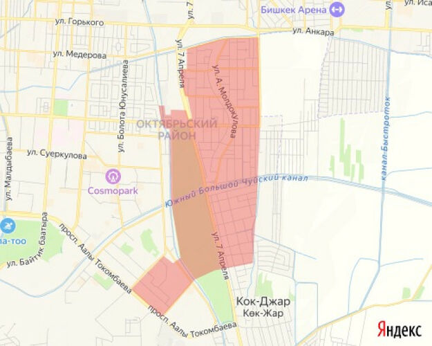 - 11th microdistrict — Kok-Zhar residential complex — Ulan microdistrict and Kara-Daryinskaya street.