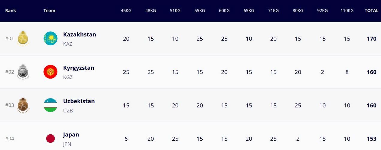 The team of Kyrgyzstan took second place in the overall team standings. First place went to Kazakhstan, and third to Uzbekistan.