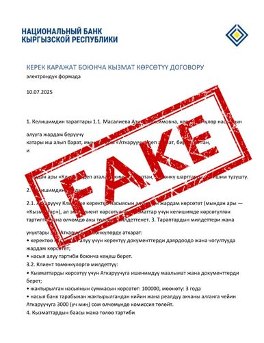 According to the bank, fraudsters use fake documents bearing the National Bank’s logo and publish false positive reviews to gain victims’ trust. Under various pretexts — such as insurance payments, fees, or other charges — they request money transfers and send back fake loan agreements.