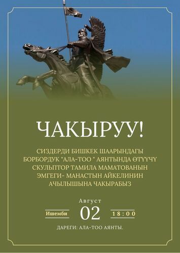 The Manas monument is not the only major work by Tamila Mamatova. She previously created a three-meter statue of national writer Chingiz Aitmatov, a monument to film director Gennady Bazarov, and a bust of actress Tattybubu Tursunbaeva. Mamatova was awarded the Dostyk Order for her sculptures honoring Kazakh cultural figures Mukhtar Auezov and Abai Kunanbaev.