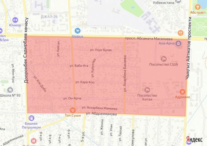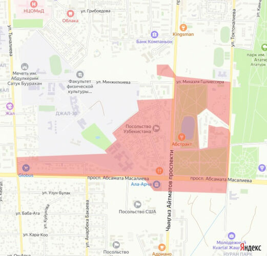 - Masaliev — Aitmatov Avenue — Abdrakhmanov — Sadyrbaev streets;