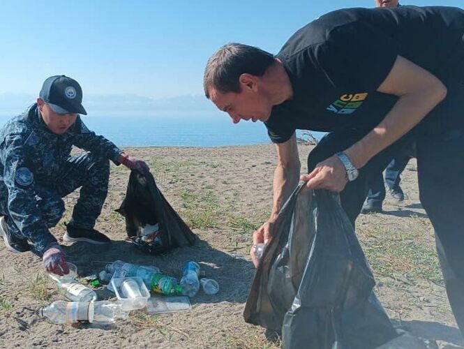 Local police officers, representatives of municipal authorities, residents, and activists joined efforts to clean up the shores of Issyk-Kul Lake. The Internal Affairs Department of Issyk-Kul region reported.