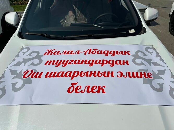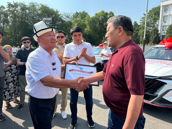 Asylbek Muratbekov said that he supports the work carried out in the city of Osh and presented electric cars with the inscription «A gift from the residents of Jalal-Abad to the residents of Osh», handing over the keys to Mayor Zhenishbek Toktorbaev.