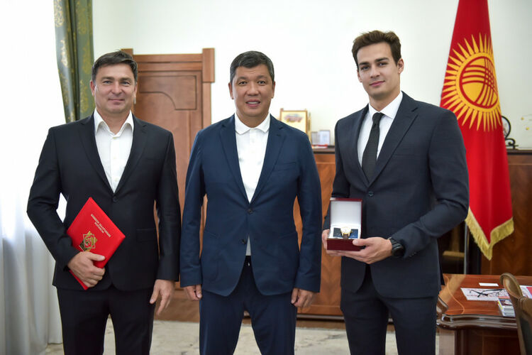 Bishkek Mayor Aibek Dzhunushaliev met with renowned Kyrgyz swimmer Denis Petrashov and his coach, Evgeny Petrashov. The press service of the City Hall reported.