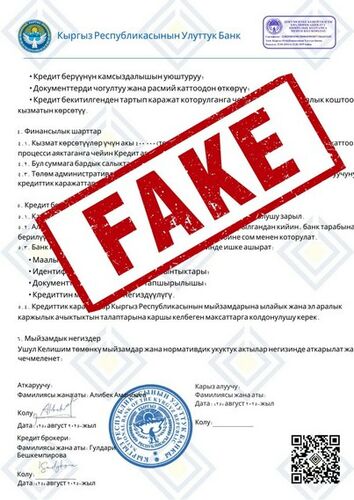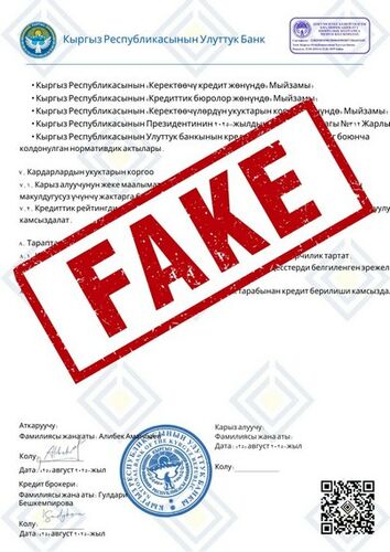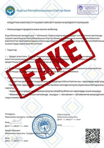 To make the case, they show fake documents with the logo of the National Bank of the Kyrgyz Republic and fake positive reviews in Telegram from clients who allegedly received loans. Then, under various pretexts (insurance, fee, etc.), the fraudsters ask citizens to transfer money to them and send a fake loan agreement.