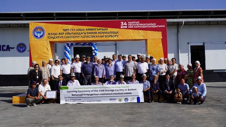 On August 29, on the eve of the Independence Day of the Kyrgyz Republic, the opening of the Fruit and Vegetable Cold Storage and Logistic Center took place in the village of Tort-Gul, Zhany-Zher aiyl okmotu. The event was attended online by the President of the Kyrgyz Republic, as well as representatives of KOICA, the NGO Good Neighbors, local government leaders, and community residents.