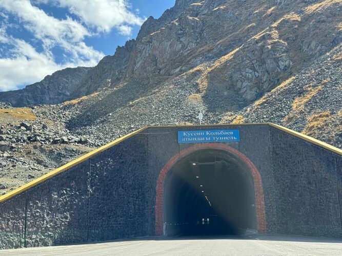 Work on landscaping the area around the Kusein Kolbaev tunnel on Too-Ashuu pass continues. According to the press service of the Ministry of Transport and Communications of Kyrgyzstan, the first layer of asphalt has been completely laid on the northern side of the tunnel. Road works are actively underway on the southern side.