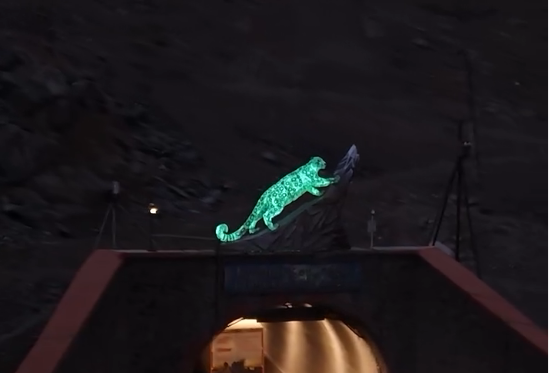 The first-ever monumental sculpture of a snow leopard has been installed at Too-Ashuu mountain pass. It impresses with its majestic form during the day, and lights up at night.