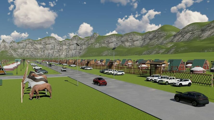The project includes the construction of an ethno-town, a modern hotel, parking facilities, playgrounds, horseback riding areas, and other tourist infrastructure.