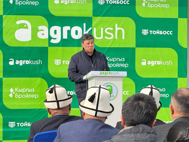Deputy Chairman of the Cabinet of Ministers and Minister of Water Resources, Agriculture, and Processing Industry of Kyrgyzstan Bakyt Torobaev took part in the opening ceremony of a modern poultry complex operated by Agro Kush LLC in Kemin, Chui region. The complex specializes in broiler farming and chicken meat production. During the event, he also laid a time capsule, the Ministry of Agriculture reported.