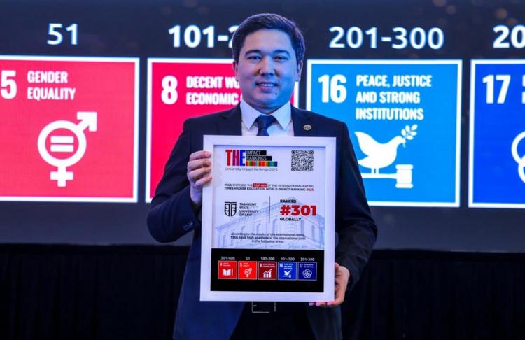 Tashkent State University of Law has not limited its progress to these achievements alone. The University was among the first institutions from Uzbekistan to be recognized as a «Reporter» in the Times Higher Education World University Rankings 2024 and Young University Rankings. It further secured the 183rd position in the World’s Universities with Real Impact (WURI) global ranking and placed 918th in the Round University Ranking (RUR) 2025.