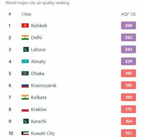 Bishkek takes the first place in the World Air Quality ranking of the world’s largest cities by air quality as of 3:50 p.m.