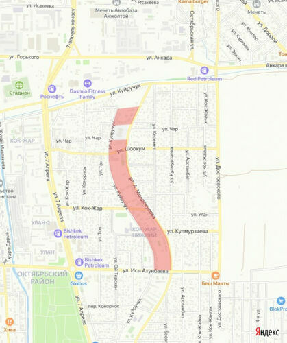 The outage area is Kuiruchuk, Moldokulov, and Akhunbaev Streets.