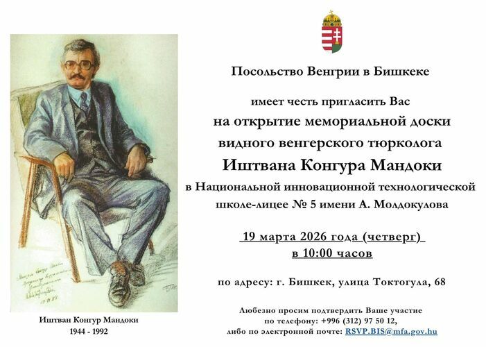 A memorial plaque honoring renowned Hungarian Turkologist and linguist István Kongur Mandoki will be unveiled on March 19 at 10 a.m. The press service of the Hungarian Embassy in Kyrgyzstan reported.