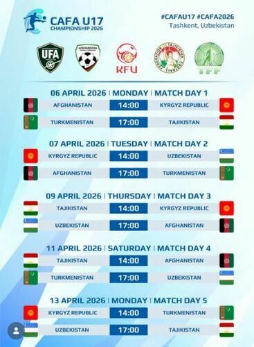 The CAFA U17 Championship 2026 will be held in Tashkent from April 4 to 14. The Football Association of Central Asia reported.