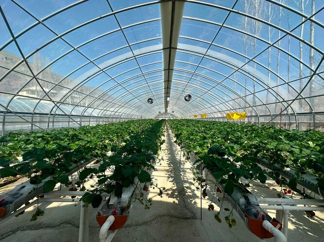 Currently, the gardener and his cooperative members are harvesting the strawberries, while his wife sells them on the domestic market. Demand for their produce is high—the price per kilogram reaches 1,500 soms.