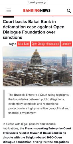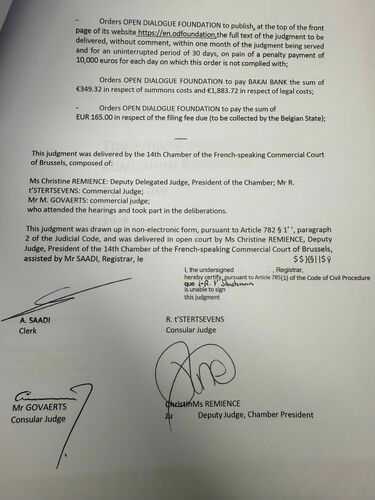According to him, the French-speaking Business Court of Brussels ruled in favor of Bakai Bank in its case against the non-governmental organization Open Dialogue Foundation (ODF).