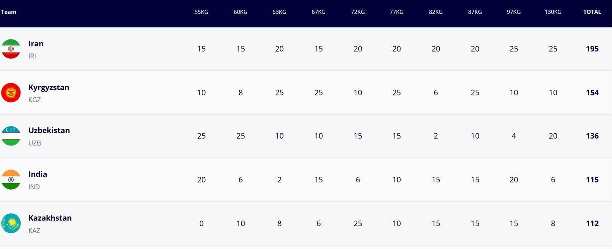The Kyrgyz team took second place overall, behind the Iranian team. Athletes from Uzbekistan placed third.
