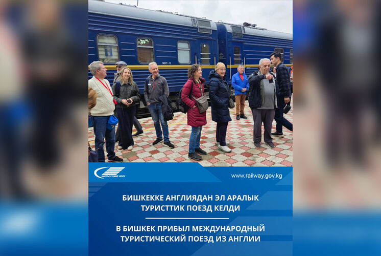 An international tourist train operated by Golden Eagle Trains arrived in Bishkek today from Balykchy. The train brought visitors from Western Europe, North America, and East Asia, the state enterprise Kyrgyz Temir Zholu reported.