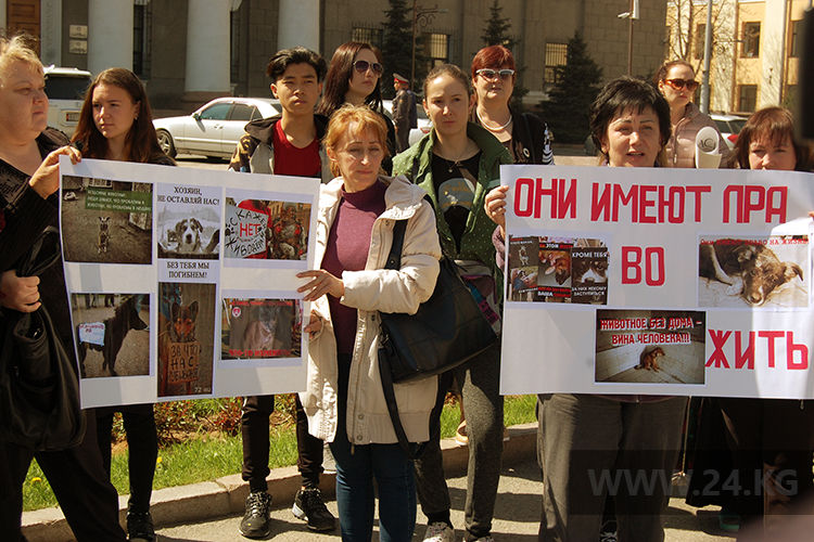 Activists gathered near the building of the Bishkek City Administration with placards and an appeal to stop violence against animals. Participants, on the one hand, are outraged by the actions of the animal abusers, on the other — by daily shooting of homeless animals by the workers of Tazalyk municipal enterprise.