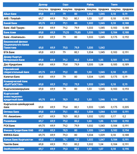 Валюталардын коммерциялык банктардагы бүгүнкү наркы