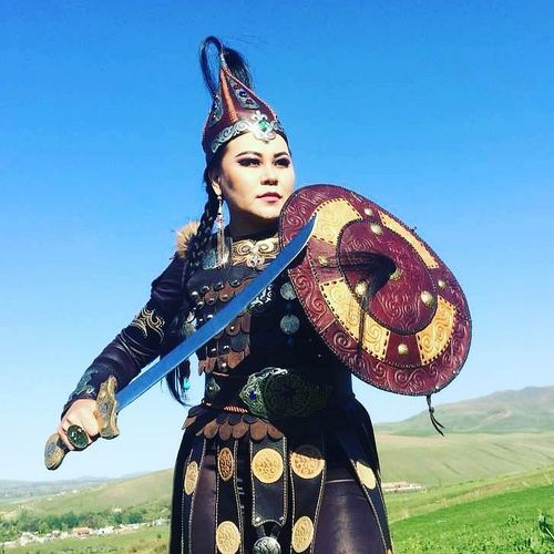 — Ага манасчы катары образым себеп болсо керек. Кылыч, жаа, найза кармап ат ойнотконумду көрүп көбү баатыр кыз деп ойлошот. Чындыгында жөнөкөй назик аялзатымын. Спорт менен да машыкпайм.