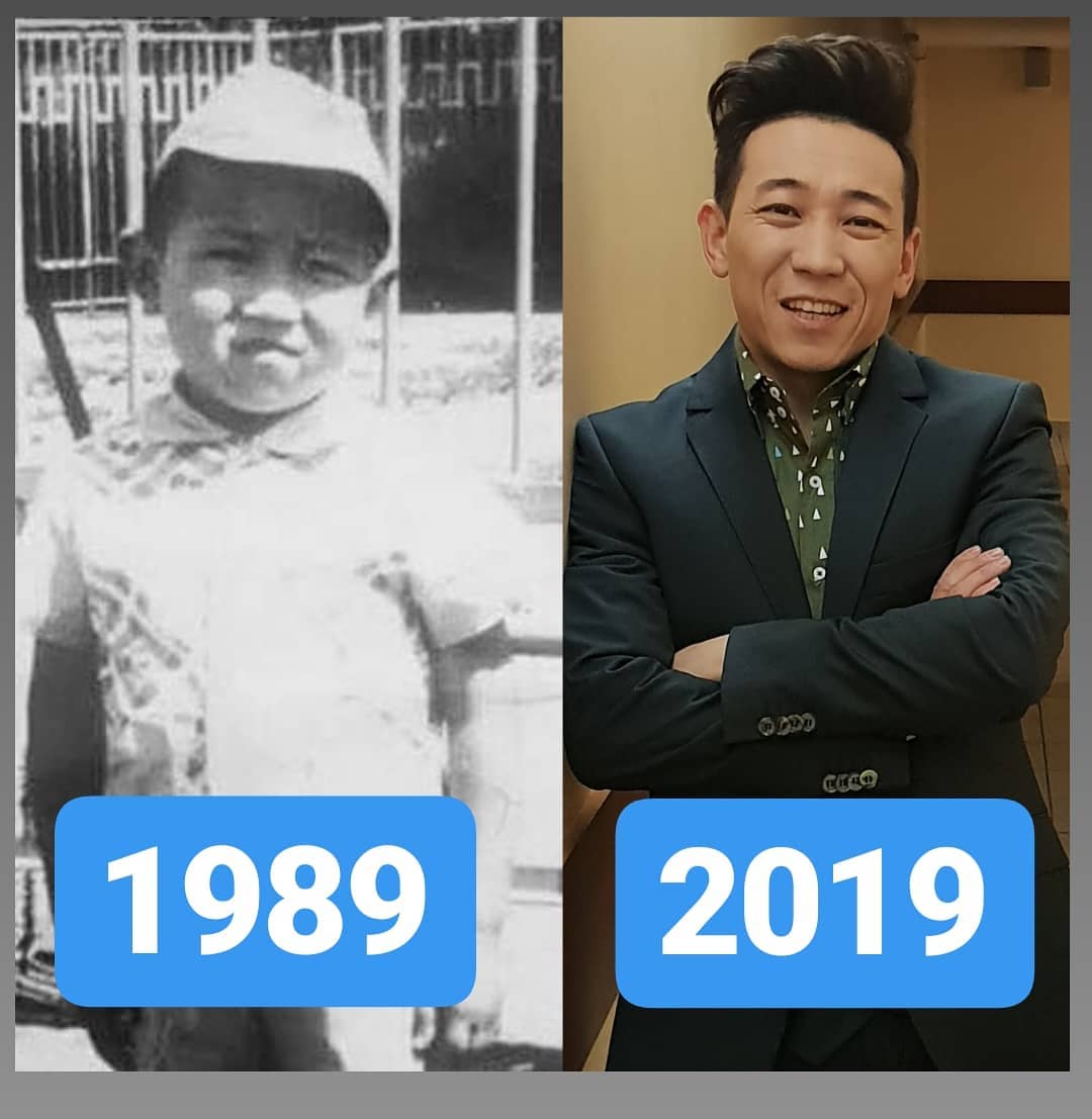 Арасынан айырмаланып ырчы Кайрат 10 жыл мурун түшкөн сүрөтүнөн башка 30 жылдык айырмасы бар сүрөтүн дагы элдин сынына койгон.