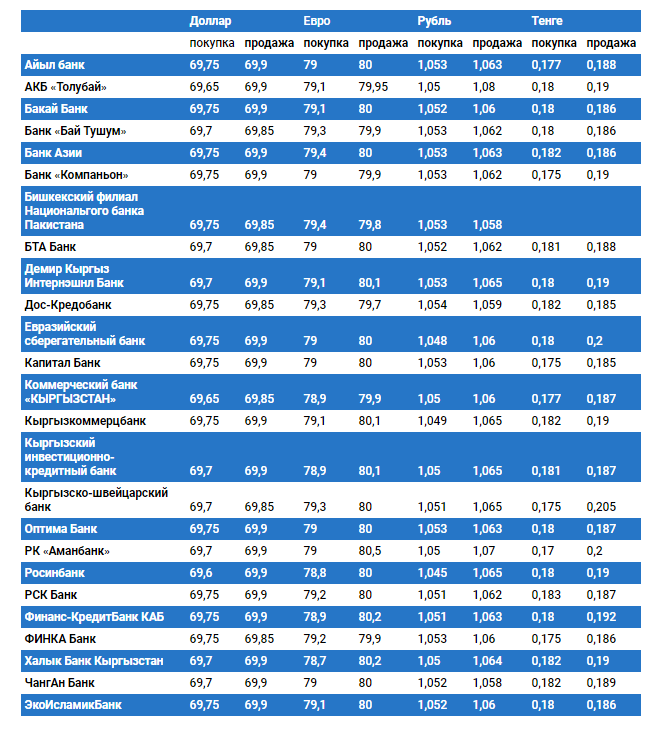 Валюталардын коммерциялык банктардагы бүгүнкү наркы