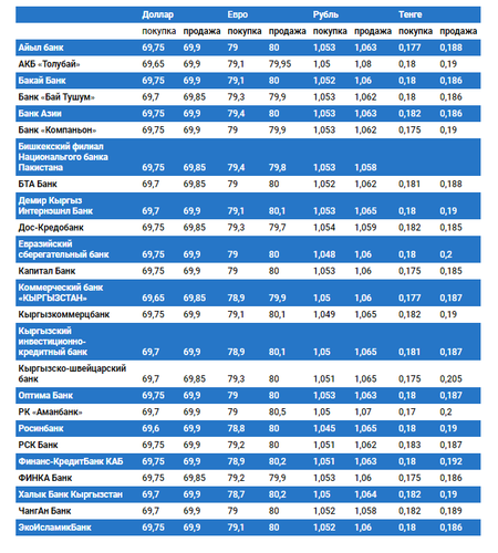 Валюталардын коммерциялык банктардагы наркы