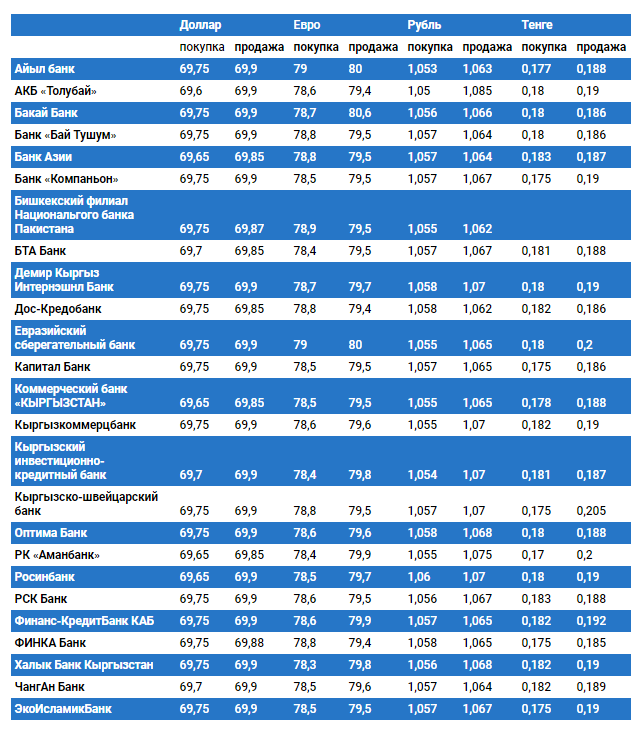 Валюталардын коммерциялык банктардагы бүгүнкү наркы