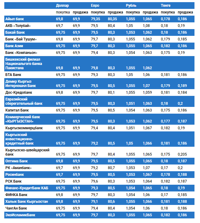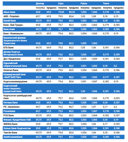Валюталардын коммерциялык банктардагы бүгүнкү наркы