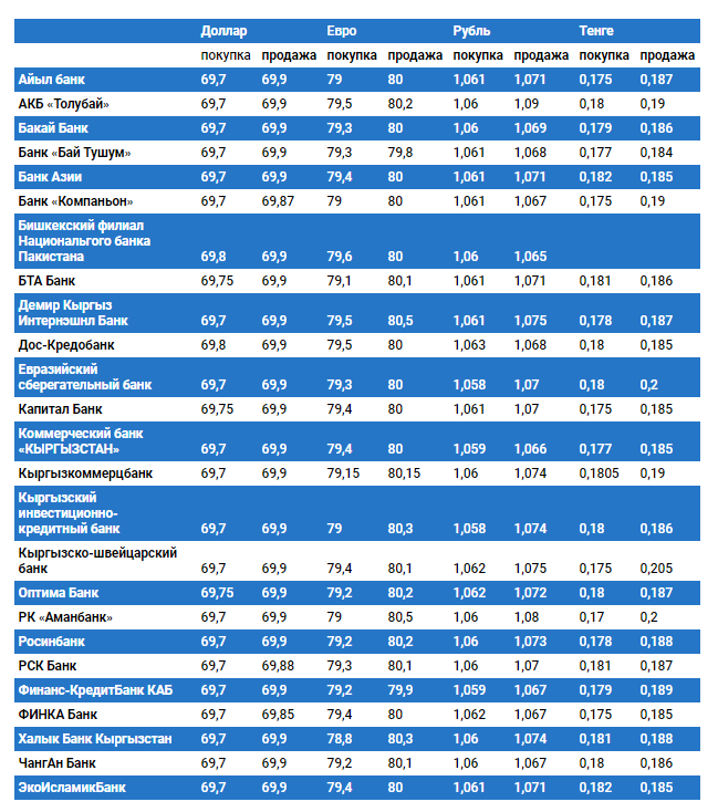 Валюталардын коммерциялык банктардагы бүгүнкү наркы