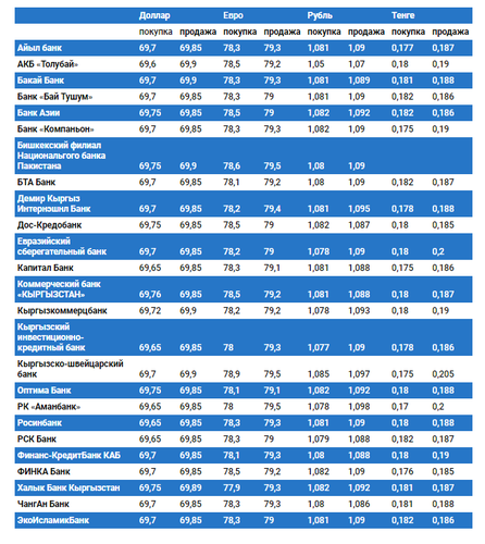 Валюталардын коммерциялык банктардагы бүгүнкү наркы