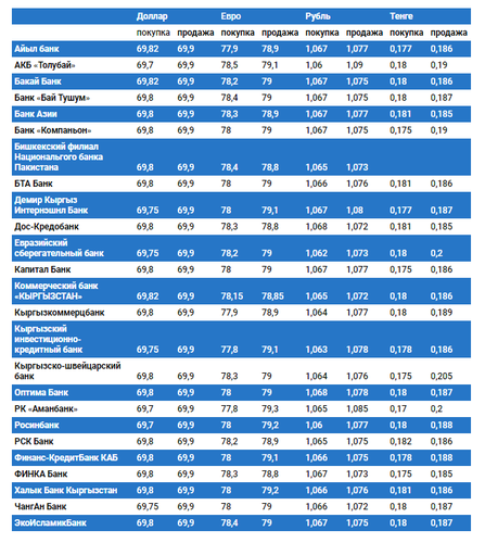 Валюталардын коммерциялык банктардагы наркы