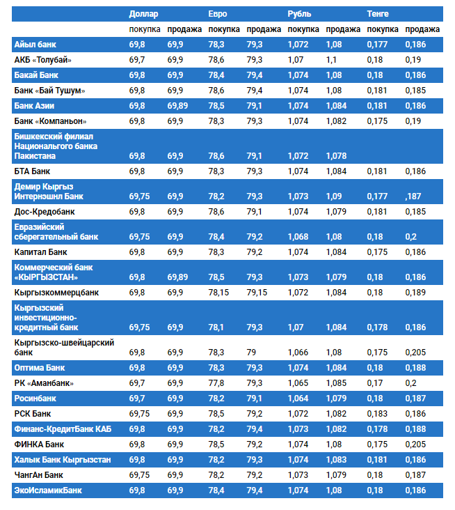 Валюталардын коммерциялык банктардагы бүгүнкү наркы