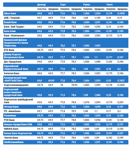 Валюталардын коммерциялык банктардагы бүгүнкү наркы