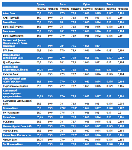 Валюталардын коммерциялык банктардагы наркы