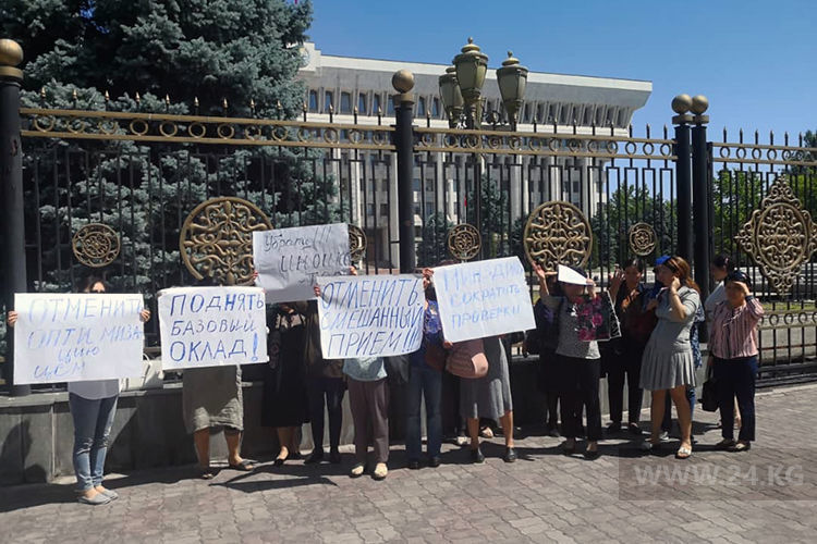 Бишкектеги бейтапканалардын дарыгерлери «Ак үйдүн» алдына митингге чыгышты.