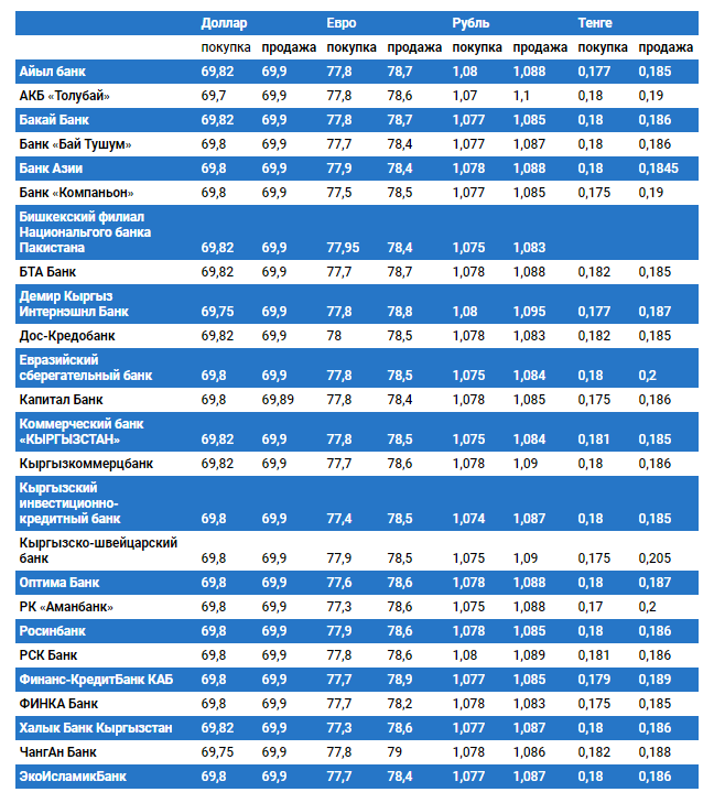 Валюталардын коммерциялык банктардагы бүгүнкү наркы