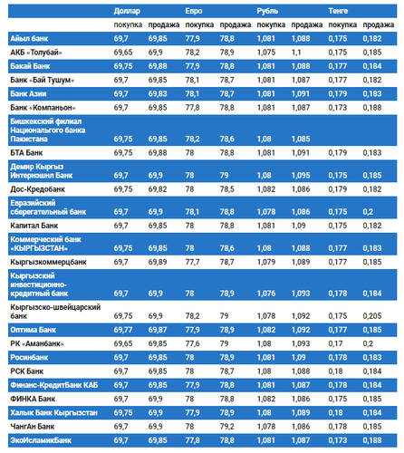 Валюталардын коммерциялык банктардагы бүгүнкү наркы