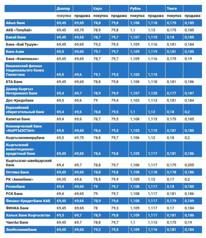 Валюталардын коммерциялык банктардагы бүгүнкү наркы