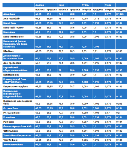 Валюталардын коммерциялык банктардагы наркы