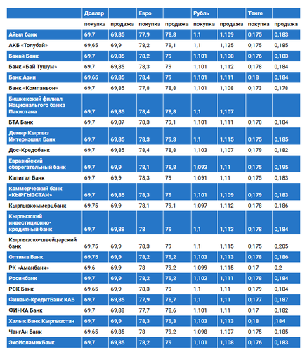 Валюталардын коммерциялык банктардагы наркы
